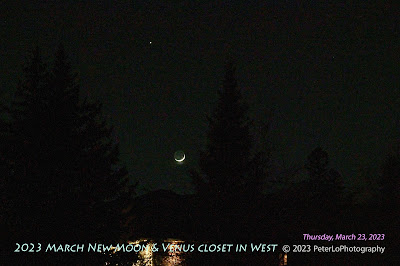 As the year turns, the Waxing Crescent (7.5% New Moon) sweeps past Venus West one hour after Sunset. Since the Moon is very close to Venus, the Moon blocks the light from Venus, and a lunar occultation event occurs for about one hour and 6 minutes (19:47 to 20:53)